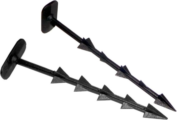 KOTWICE WYKONANE SĄ Z BARDZO MOCNEGO TWORZYWA DZIĘKI CZEMU MOŻNA NIMI MOCOWAĆ AGROWŁÓKNINE JAK I TKANINĘ ŚCÓŁKARSKĄ A DZIĘKI SPECJALNYM NAPRZEMIENNYM ZĄBKOM ORAZ SZEROKIEMU ŁEBKOWI BARDZO MOCNO ZAKOTWICZAJĄ SIĘ W ZIEMI