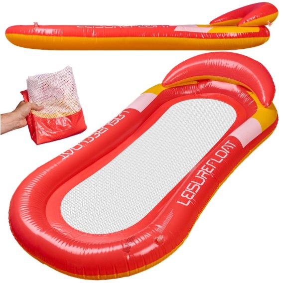Na leżaku możesz dryfować w pozycji leżącej lub siedzącej, podpierając się o dmuchany zagłówek. Możesz także ćwiczyć na nim pływanie - antypoślizgowa siatka zapewnia optymalną stabilizację ciała.