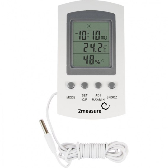 Urządzenie umożliwia pomiar temperatury zewnętrznej i wewnętrznej (w °C lub °F), a także wewnętrznej i zewnętrznej wilgotności. Wbudowana pamięć przechowuje ostatnie najwyższe i najniższe wyniki i pozwala na ich sprawdzenie np. po naszej całodziennej nieobecności w mieszkaniu. Dodatkowym atutem jest również możliwość ustawienia alarmu informującego nas o znacznym spadku lub wzroście temperatury do zadanej wartości (zarówno na zewnątrz, jak i wewnątrz) oraz wilgotności (wewnątrz). Pozwala to na kontrolowanie temperatury np. w pokojach dzieci, na balkonie, czy w pomieszczeniach z nastawami, gdzie do odpowiedniego przebiegu procesu fermentacji temperatura musi być stale kontrolowana.