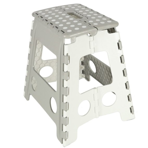 Składany stołek w jasnoszarym kolorze: