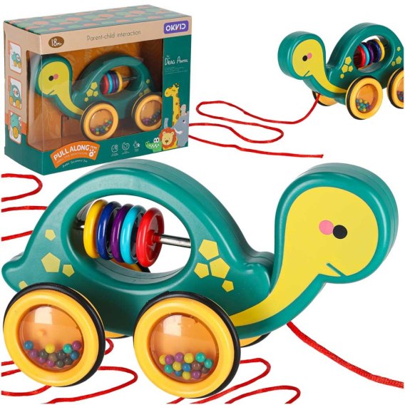 Do grzechotki przyczepiony jest długi sznurek, który umożliwia wygodne ciągnięcie jej za sobą! Dzięki temu żółwika można zabrać na długi spacer i wspaniała przygodę!